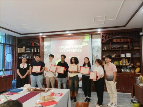 这批留学生也是华体网页版_华体(中国)省级精品课程《邮轮客舱服务与管理》的国际学员,茶话会后,学院为他们颁发了课程优秀学员证书,感谢他们对华体网页版_华体(中国)省级精品课程国际化认证做出的贡献。