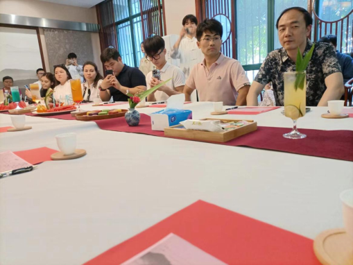 随后,陈蔚向全体成员讲述生煮羹饮、烹茶、点茶、泡茶等中国饮茶文化,张清海讲授了茶叶的专业审评方法。通过看干茶、赏汤色、闻香气、品滋味、触叶底等步骤,留学生们用自己国家语言文字填写《茶叶品鉴卡》记录自己对中国茶文化的体验,拍照记录茶汤品鉴过程。