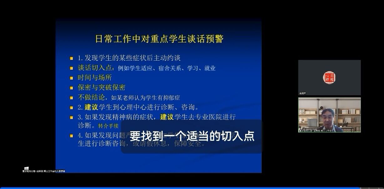 5月11日至6月11日,为提升心理健康专兼职教师的谈心谈话、危机干预技能,有效识别并处置危机,学工部选送25名老师参加2024年高校“一站式”学生社区综合管理模式创新与辅导员心理育人专题培训。