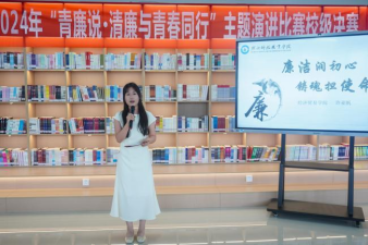 软件工程学院的焦锦同学以“清风润万家,廉韵启新程”为主题,讲述了以民为本、秉公执法的陈兴甲和两袖清风、淡泊名利的张桂梅的事迹,他说到“新时代中国青年,要在成长拨穗期在心中种好廉洁自律的第一颗种子,清清白白做人、干干净净做事,才能更好地担当起实现中华民族伟大复兴的时代重任。”