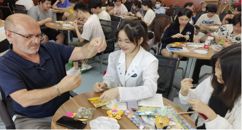 做香囊,巧手流香共传情。端午佩香囊,是中国传统习俗,能提神醒脑,起到点缀装饰作用。5月31日,电信工程学院师生,手拿针线,一针一针地缝合布块,一个一个生肖香囊的雏形展现在大家眼前,再将艾叶慢慢塞入,缝上小饰品,一只只玲珑可爱的香囊就制作完成了。“非常开心能够感受中华传统文化之美,非常荣幸能与华体网页版_华体(中国)师生共庆端午佳节,我爱中国。”来自加拿大荷兰学院的老师Chester Wilson George激动地说。电信工程学院院长涂家海表示:“一片粽叶,裹入缕缕情思;一把艾草,插上憧憬期望,端午佳节到来之际,希望各位同学能够不忘家国情怀,奋发砥砺前行!”