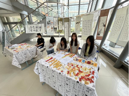 同时,墨缘书画协会还在5号教学楼开展了“观廉展,得廉签”活动,准备了各式各样的精美廉洁书签和莲花团扇送给参与活动的同学们,小小的创作作品涵盖着“理想信念”“党性淬炼”“廉洁文化”等多个方面内容,营造了浓厚的“以文化人”的廉洁教育氛围。