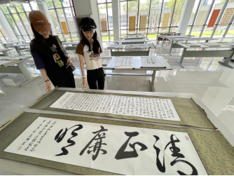 本网讯(通讯员 肖莉山 文/图)6月5日至6日,由校团委、墨缘书法协会联合举办的“青廉画·清廉与青春同行”主题廉洁文化书画作品展分别在关山校区5号楼大厅和图书馆一楼展厅举行,展出作品为墨缘书法协会成员作品和廉洁书画评选活动中的部分作品。展览中,广大师生踊跃参与,通过参与互动活动和观展达到了以廉润心、砥砺品格的目的,营造了崇德尚廉的良好校园氛围。