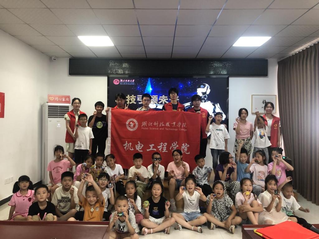 本网讯(通讯员 毛大名 文/图)为积极响应大学生暑期“三下乡”社会实践活动的号召,服务少年儿童健康成长,7月19日,机电工程学院匠心志愿服务队6名志愿者在指导老师毛大名的带领下,走进湖北省襄阳市枣阳市南城街道沙店社区“暑假学堂”爱心托管班开展为期两周的关爱留守儿童支教活动。通过一系列形式多样、内容丰富的课程和多样化的教学方法,拓宽了孩子们的视野,助力提升孩子们的综合素质,为培养社会主义合格的建设者和可靠的接班人打下了深厚基础。