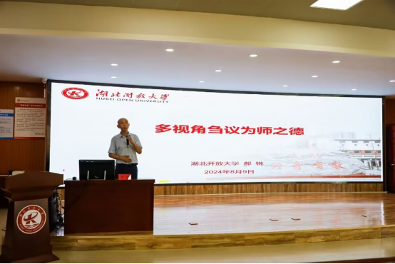 8月9日下午,软件工程学院党总支书记郝锐在思政大讲堂以《多视角刍议为师之德》为题作专题党课。他从“传统文化视角溯师德之源;从职业道德视角析师德之正;从时代背景视角悟师德之要;从生涯成长视角思师德之行”四个方面生动鲜活地分享了对师德师风的理解,阐述了师德师风的重要性。他表示,把“道”内化于心外化于行就是“德”,作为传道授业解惑的人民教师,要以德立身,以德治学,以德施教,铸魂育人是高线,深耕业务是常线,遵纪守法是底线。