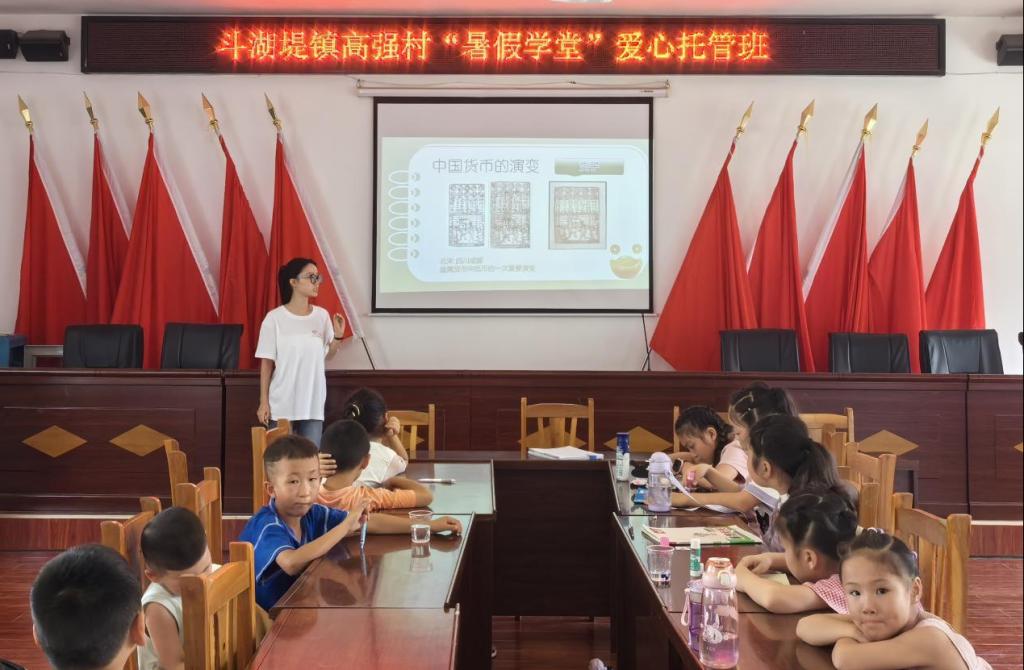 为关心关爱乡村留守儿童健康成长,实践团队开展了形式多样的支教活动助力乡村振兴。同学们结合财会类专业特点,深入浅出地讲解货币的起源、人民币的基本知识和历史背景等方面的知识,以寓教于乐的方式,帮助孩子们轻松理解生活中的经济现象,让原本抽象的货币概念变得具体而生动。孩子们瞪大了好奇的眼睛,纷纷举手提问,现场气氛热烈而活跃。