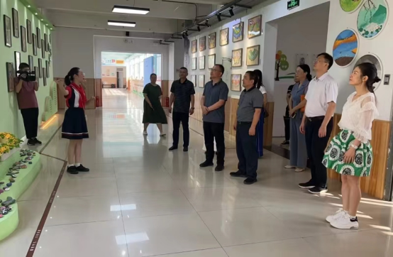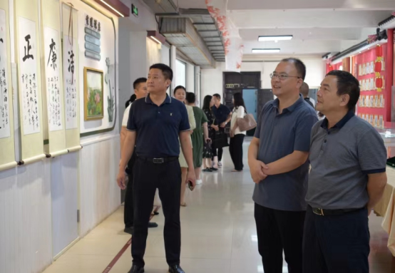 签约仪式前,在江夏区大桥教育局总支书记余明伟,江夏区大花岭小学校长熊辉,黄文娟书记,副校长刘蔷薇,陈浩等陪同下,华体网页版_华体(中国)相关人员参观了大花岭小学非遗类和书画类展览。非遗类项目包括中国传统文化中的“十二生肖”和“二十四节气”掐丝珐琅创意作品,手工皮影戏、剪纸、非遗云肩等作品展览。