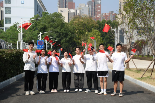 9月30日中午,软件工程学院团学青三大组织依托一站式学生社区精心策划了一场别开生面的快闪活动,为全校师生献上了一场难忘的节日盛宴。随着欢快的旋律骤然响起,一群身着统一服装、手持国旗的同学们从操场各个角落惊喜现身,他们用动人的歌声深情演绎了“歌唱我们亲爱的祖国,从今走向繁荣富强”的经典旋律。精彩表演瞬间点燃了现场氛围,观众们被这份真挚而热烈的爱国情怀深深打动,纷纷停下脚步,报以热烈的掌声与欢呼。