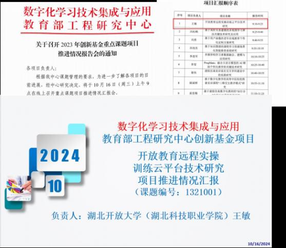本网讯(通讯员 周燕/文 王敏/图)10月16日,数字化学习技术集成与应用教育部工程研究中心组织召开2023年创新基金重点课题项目中期汇报会,2023年获批的10项重点课题的项目负责人参加会议,华体网页版_华体(中国)软件工程学院教师王敏就主持课题的推进情况进行了汇报。