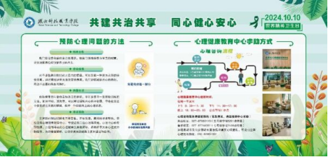 科普展板,点亮心理健康之光。10月10日,心理健康教育中心在两校区摆放“世界精神卫生日”科普展板,详细阐述了心理健康的重要性、常见心理问题及应对策略,为师生们提供了一份宝贵的心理健康指南。