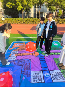 心“富翁”,趣味传递心理知识。通过心理知识问答、趣味动作挑战以及健康生活达人等游戏,吸引了近百名学生参与到心理知识棋盘中来,在轻松愉快的氛围中增进大家对心理健康知识的了解。