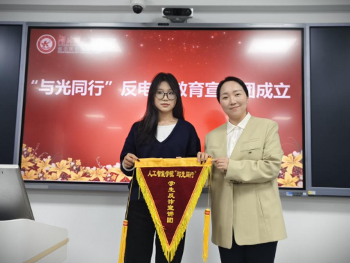 为鼓励师生持续开展反诈防骗宣传教育工作,10月31日人工智能学院举办了“小心防诈骗·安全0距离”青年沙龙·暨“与光同行”反电诈教育宣讲团成立仪式。