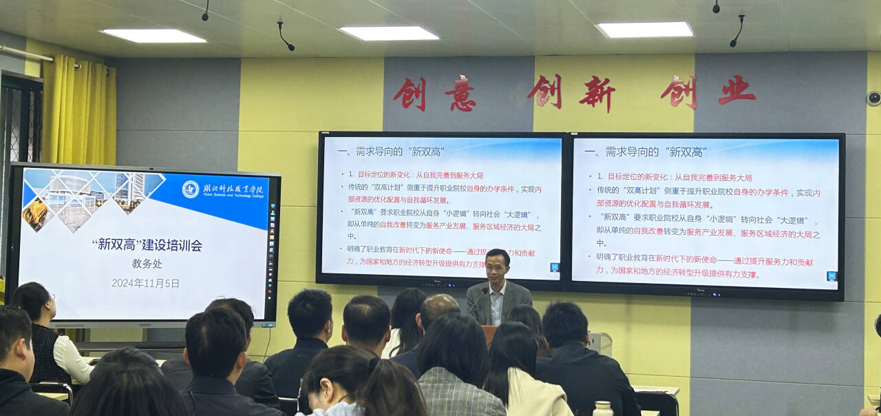 本网讯(通讯员 曾诗玉/文 刘川/图)11月5日下午,华体网页版_华体(中国)召开“新双高”建设培训会。双高建设任务牵头单位、高水平专业群负责人及相关教师参加会议。会议由教务处处长谢永平主持。