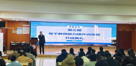 教务处处长谢永平致辞,他肯定了前两期骨干教师能力提升训练营取得的成效,阐释了开展骨干教师训练营的现实意义,并鼓励在座学员珍惜学习机会、做到学以致用、相互学习借鉴,不断提升教育教学水平,助力学校人才培养质量提升。