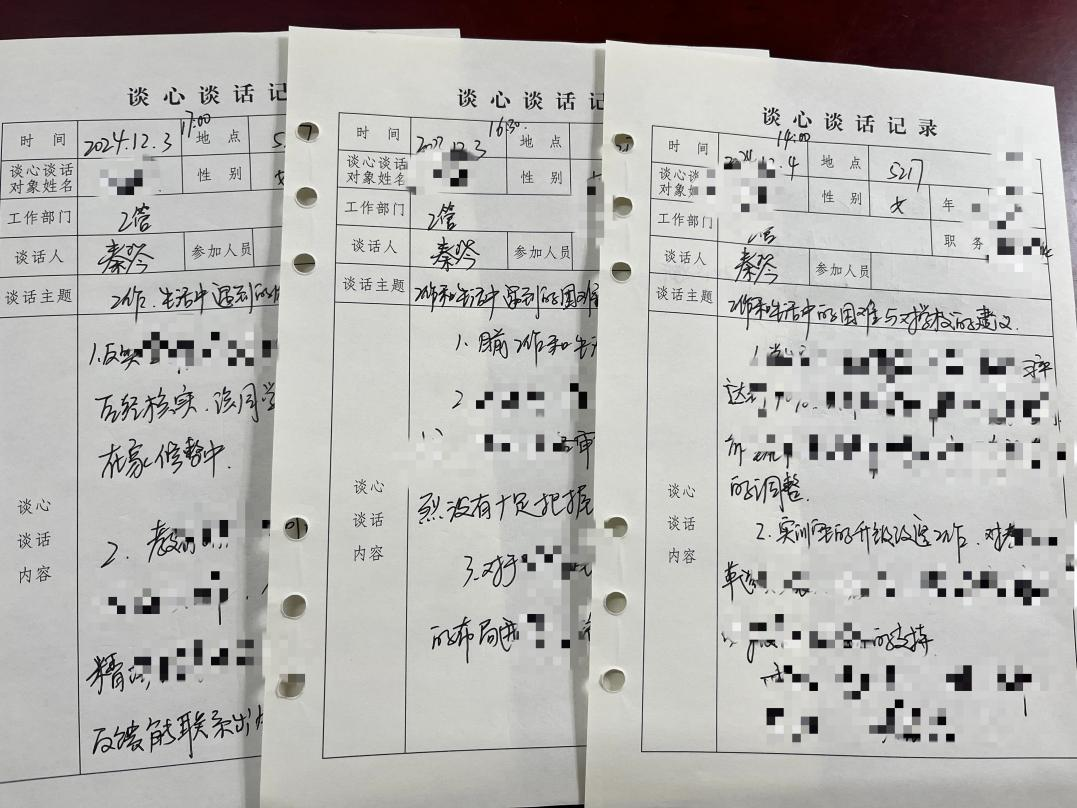 辅导员团队坚持“不留死角”的走访原则,深入学生寝室,开展逐一的谈心谈话工作。线下详细记录好每一次交流,同步在“辅导猫”平台建立学生谈心谈话档案,提交日志800余篇;对学生的思想、人际关系、亲子关系、过往经历、学习现状、心理等各方面进行全面了解和摸排,及时建立暖心关爱行动台账,对学生提出的困惑进行解答,并细化帮扶措施,持续跟进。同时,辅导员还主动走访学生实习企业,关心慰问学生实习与就业情况。