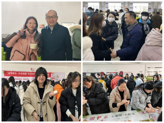 本网讯(通讯员 张哲聪/文 舒雪美/图)为持续推进“暖心关爱”行动计划,弘扬中华优秀传统文化,12月18日,工商管理学院联合后勤服务中心在关山校区食堂三楼举办“温情暖冬·共享团圆”冬至关怀暨感恩教育活动。学院党总支书记熊振、正处级组织员吕恒喜,副院长秦琴、谢爱平,后勤服务中心主任祝玉平、学工部部长白杰、校团委副书记向珅玓等百余位师生欢聚一堂,一同包饺子,喜迎冬至到来。