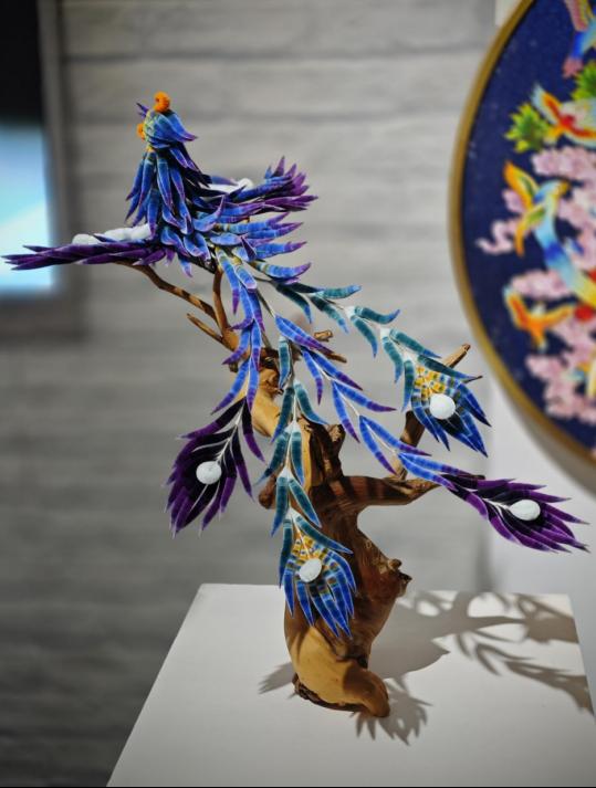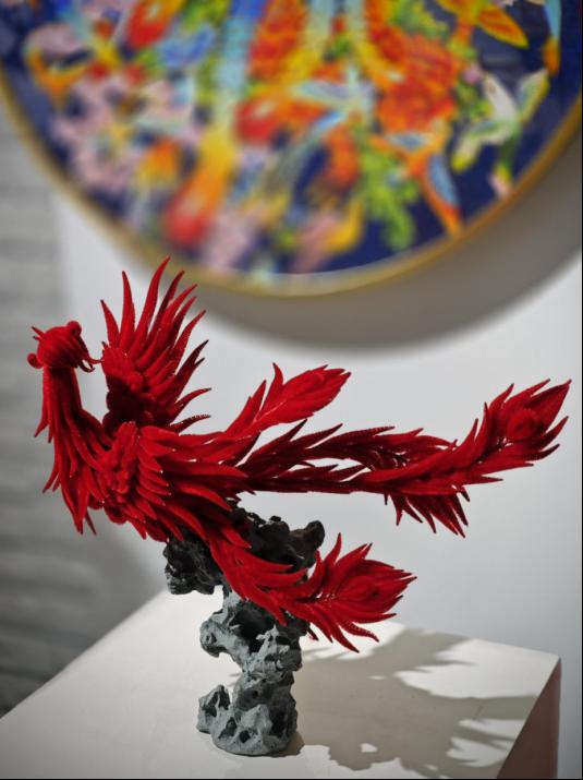 作品“灵翅凤舞”匠心独运,将传统绒花工艺与楚凤文化精髓巧妙融合,借助现代科技手段,淋漓尽致地展现了凤鸟翱翔天际的灵动壮美。这一创意之举,不仅是对传统文化元素的创新性传承,更是现代科技与荆楚文化的一次完美交融,赋予了传统艺术以新的生命力。本作品充分展现了华体网页版_华体(中国)在美育与非遗教学领域的积极探索,彰显了师生们的非凡创意才华和深厚的技艺功底。
