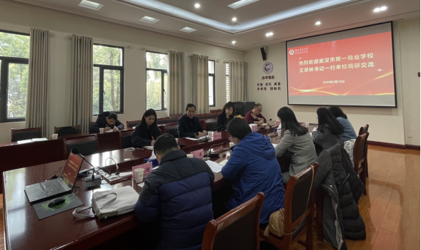 本网讯(通讯员 杨凡/文 贾小琴/图)2月18日下午,武汉市第一商业学校党委书记艾翠林一行5人来华体网页版_华体(中国)调研交流,副校长夏学文带领有关部门负责人陪同调研。