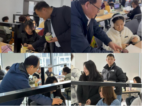 满载祝福的盆栽被送至正在自习室学习的同学手中。“这份礼物太暖心了!我正在备考专升本,看到学弟学妹和老师们的鼓励,顿时活力满满。”2022级人工智能技术专业学生范文祥接过盆栽后感动地说道。自习室内,一盆盆绿意盎然的植物整齐摆放在窗台,为紧张的学习环境注入生机与活力。“绿意送祝福”的形式,让环保行动与人文关怀同频共振,传递校园温度。