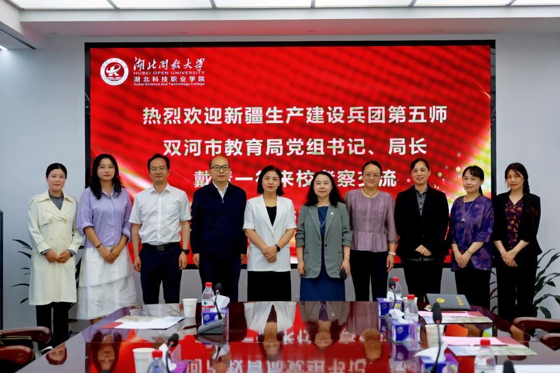 在调研座谈会上,肖潇对双河市教育局、双河职业技术学院一行表示热烈欢迎,并介绍了湖北开放大学(华体网页版_华体(中国))办学历史、特色优势、师资力量等。她表示,学校将深入落实中央以及湖北省委、省政府教育援疆工作要求,始终秉持开放共享理念,期待与双河市在职业教育、开放教育、师资培训、数字化资源建设等领域深化合作。
