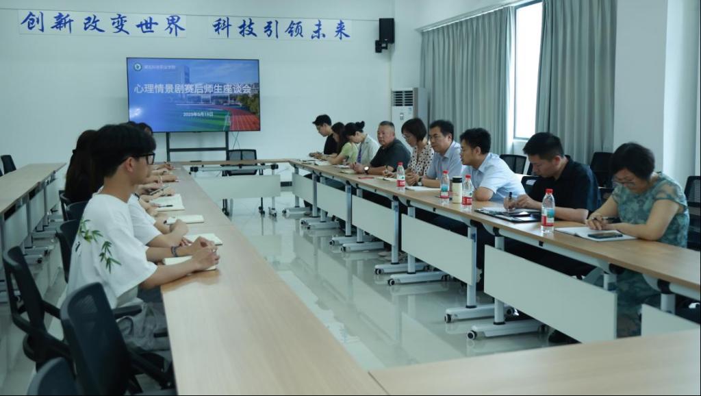 座谈会上,饰演主角“小满”的学生分享,“在一次次排练中我学会了与压力和解,在全国舞台上看到了来自各个学校学生的精神风貌,也更加感受到了心理剧治愈人心的力量。”指导老师感慨道“看着学生们为了一个眼神、一句台词反复打磨,牺牲午休时间对戏、熬夜修改剧本,甚至带病坚持排练,既心疼又感动。但当他们在舞台上绽放光芒时,我深知这些汗水都化作了照亮心灵的星光。感谢学校的经费支持,场地保障,以及各部门的协同合作,为剧目孵化提供了丰沃土壤。”学工部心理中心老师讲到,此次突破是学校多年来心理育人工作的积淀,未来,将加强师资培训、完善支持体系,让更多师生在心理剧等载体中找到心灵共鸣。软件工程学院领导班子表示,剧目成功的背后,是学校“大思政”格局下各部门的协同发力,让学生没有后顾之忧地投入创作。