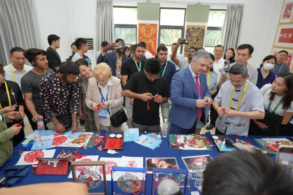 活动周期间,学院接待了新疆生产建设兵团第七师胡杨河市义务教育学校研学团。通过开展剪纸工作坊、数字艺术体验等特色活动,搭建起中西部美育教育协作平台,不仅为研学团成员带来了丰富的艺术体验,更以实际行动彰显了职业教育服务社会、促进区域教育交流的责任担当
