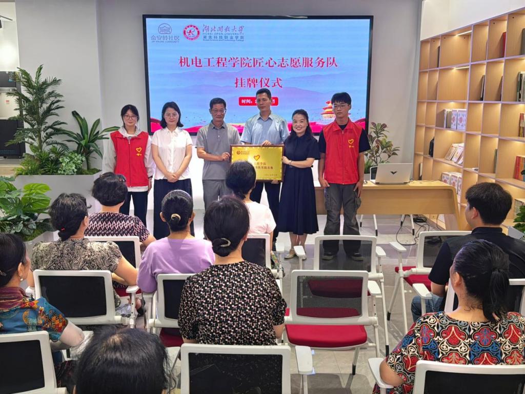 7月24日,机电工程学院党总支书记、教工一支部书记在金安岭社为社区授牌“华体网页版_华体(中国)机电工程学院匠心志愿服务队实践基地”,金安岭社区书记陈静、宜昌市西陵区委社会工作部副部长谢登彪、夜明珠街道副主任张愉和共同出席仪式。学院党总支书记表示,此次是校社联动的生动实践,既发挥高校专业优势,又锤炼学生服务能力,未来将依托优质教育资源,与社区共丰居民生活、共建和谐社区。