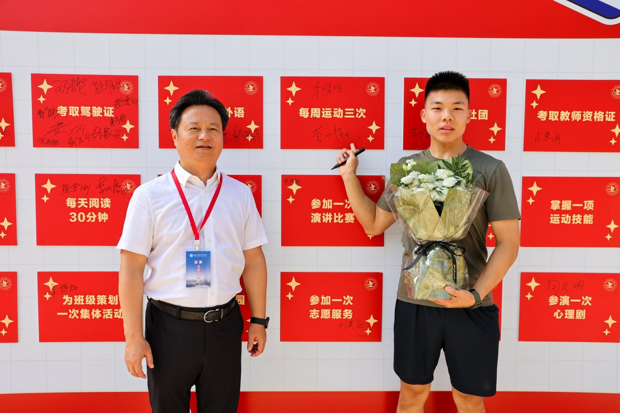 迎新现场,25级金融科技应用专业退役入学学生李维维身着整洁服饰,带着军人的坚毅与担当踏入校园,成为一道特殊的风景线。校长陈志祥为李维维送上鲜花,对他过往携笔从戎、保家卫国的军旅生涯表达肯定与赞扬,也鼓励他能够继续保持军人的优良作风,勇攀知识的高峰。李维维表示将继续保持部队的优良作风,用军人顽强拼搏、永不言败的姿态勇敢地迎接每一个挑战。