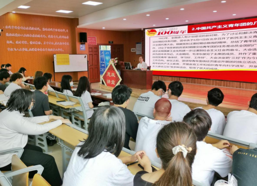 张文凯围绕共青团的创建、四次更名的经历以及各个时期共青团为实现中华民族伟大复兴中国梦作出的重要贡献,带领同学们了解中国共青团的光辉历程,期间重点对习近平总书记在庆祝中国共青团成立一百周年大会上的重要讲话要点进行深度解读。他殷切希望同学们要有理想、有追求,继承和发扬伟大的五四精神,把个人的理想追求融入党和国家事业之中,坚守理想信念,厚植家国情怀。