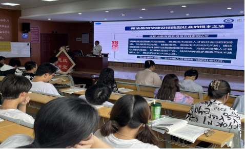 本网讯(通讯员 汤传文 文/图)《中华人民共和国职业教育法》修订施行以来备受社会各界关注。5月25日下午,校党委常委、副校长宋移安为2021级物联网和区块链专业的学生讲授“技能报国,强国有我——职业教育法开辟奋斗新时代”的主题思政课,勉励新时代的青年学生乘着职业教育政策的改革春风,怀抱技能报国之志,践行技能成才之举。