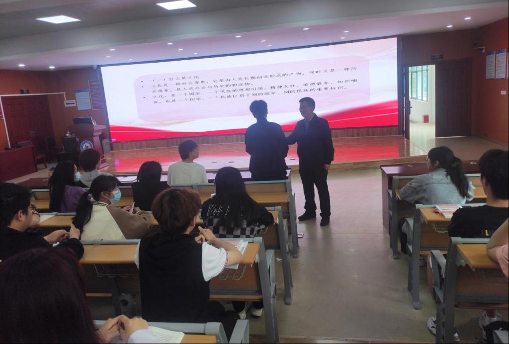 本网讯(通讯员 宋显 文/图)5月11日上午,校党委常委张化斌以“中华优秀传统文化及其当代价值”为主题,为电信工程学院22级学生上了一堂思政课。他指出,文化自信是一个国家、一个民族发展中更基本、更深沉、更持久的力量。青年学子应当赓续优秀传统文化、坚定文化自信自强。青年学子应当深刻领会中华优秀传统文化是中国特色社会主义植根的文化沃土,要把报国之志转化为勤学苦练的内生动力,把家国情怀转变为踔厉奋发的精神力量,用出色的专业能力交出一份无愧于祖国、无愧于人民、无愧于时代的青春答卷。