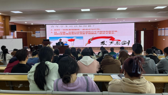 “要解决台湾问题中国面临哪些困难”“俄乌冲突能够给中国哪些启发”,讲课过程中李宜兵教授深入浅出、旁征博引,和同学们共同探讨这些事关祖国统一大业的关键问题,回应了青年学生的情感关切,实现了历史深度与现实温度的有机结合。李宜兵强调:实现祖国完全统一是全体中华儿女的共同愿望。新时代青年要坚信祖国必须统一,也必然统一。