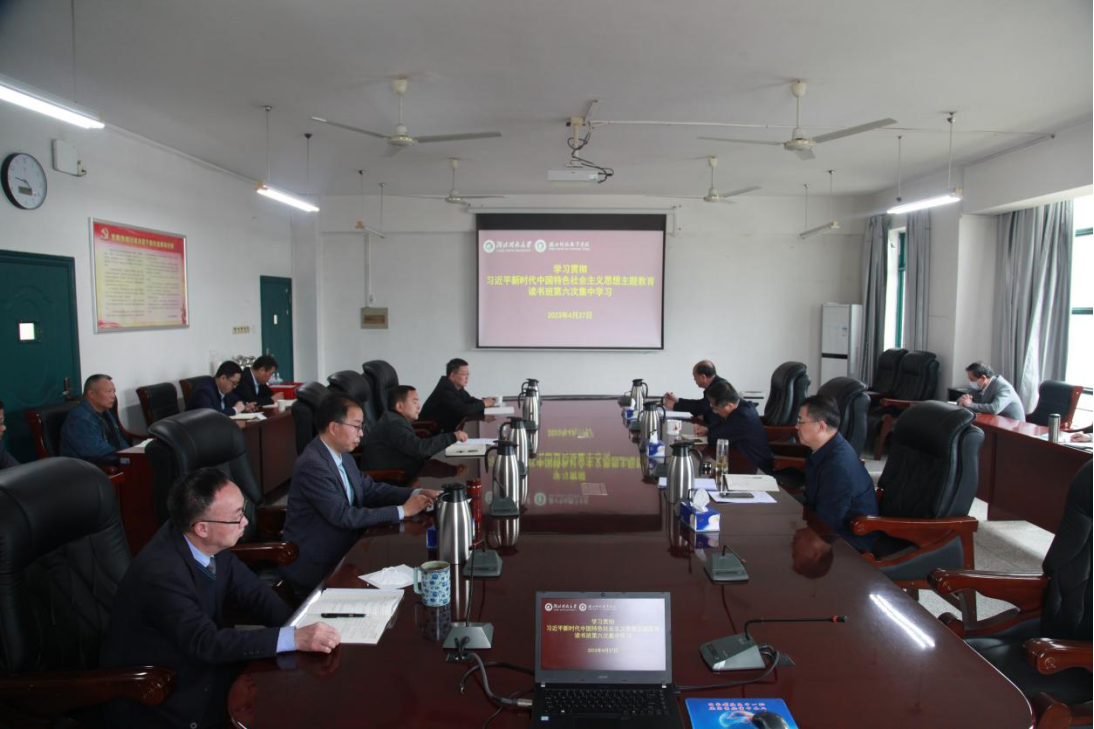 本网讯(通讯员 刘捷 文/图)4月27日上午,学校学习贯彻习近平新时代中国特色社会主义思想主题教育读书班举行第六次集中学习。全体校领导、党委委员、纪委委员参加学习。党委书记刘义主持学习会。